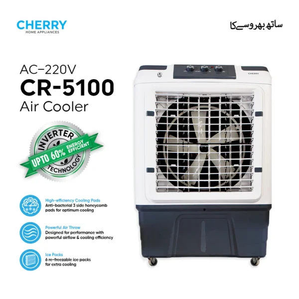 The Cherry Room Cooler 5100 is built to provide optimal cooling for large spaces, making it perfect for homes, offices, and large rooms. Its powerful cooling system, combined with honeycomb pads and a high-capacity water tank, ensures long-lasting relief during hot weather. The cooler’s energy-efficient design saves on electricity while delivering consistent performance. With its portable, easy-to-use design and adjustable settings, the Cherry Room Cooler 5100 is an ideal solution for anyone looking for a reliable and cost-effective way to beat the heat.