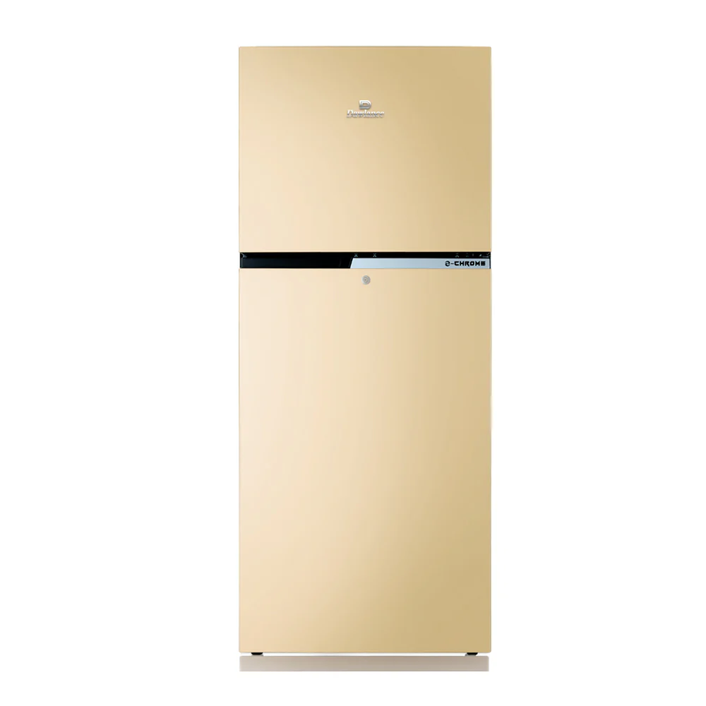 The Dawlance REF 9140 WB E-Chrome Hairline Golden refrigerator seamlessly combines cutting-edge cooling technology with an elegant design. With its Direct Cool technology, energy efficiency, and striking hairline gold finish, it’s the perfect blend of style and performance for any modern kitchen.